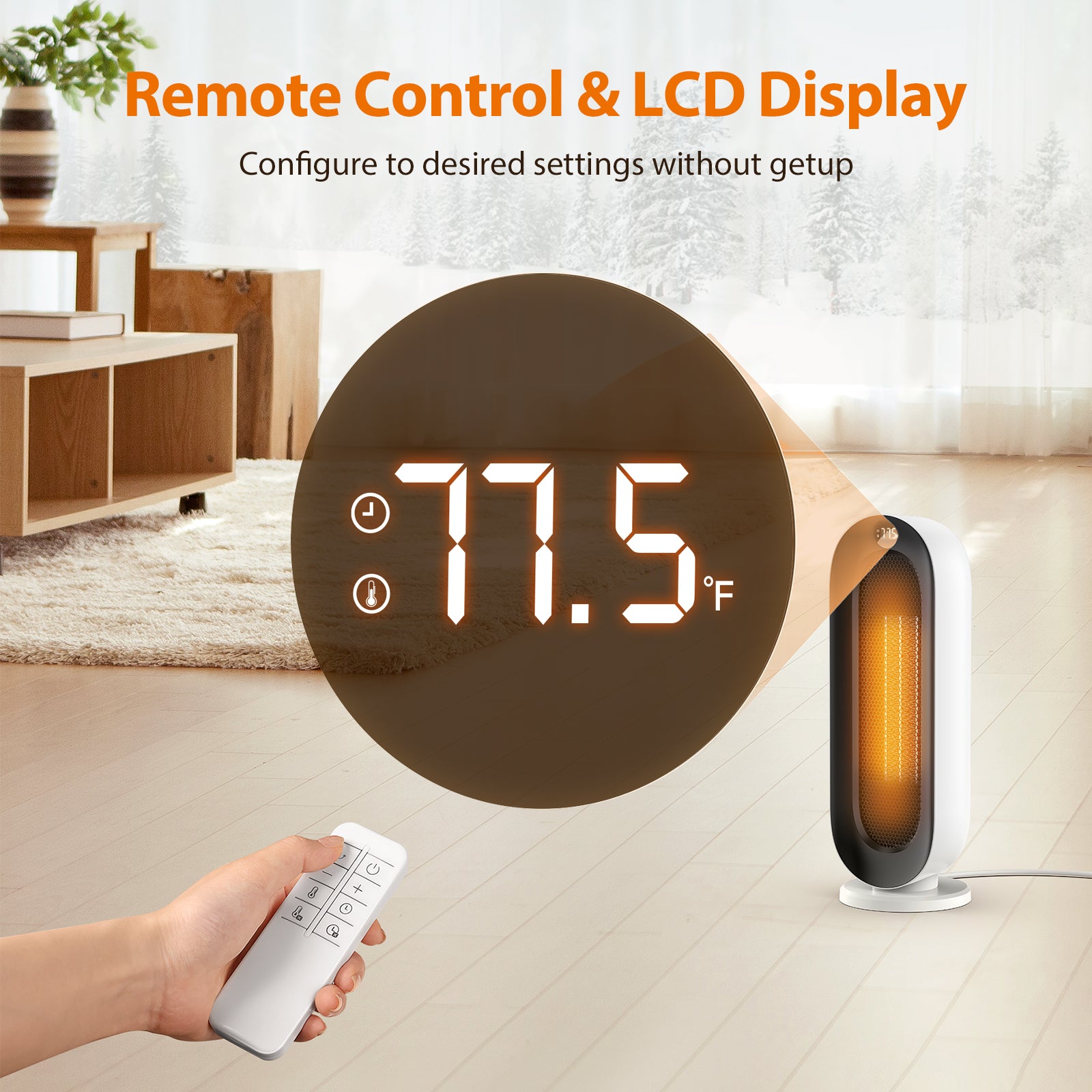 - ๐ฅ๐๐ฌ๐๐ ๐ ๐๐จ๐ฆ๐๐จ๐ซ๐ญ - Unlike any other space heaters, this electric space heater features with stylish and portable back-handle design. Nice digital readout, makes you easily recognize the room temperature for maximum convenience. Even set the timer to run as you desire (1-12hrs). Our portable heater comes with remote control, allowing you to operate different settings and come in handy for lazily on the couch.